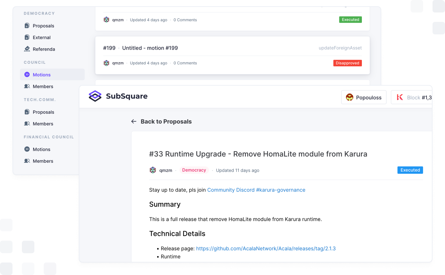 SubSquare enables community members to propose, discuss and vote on governance proposals.